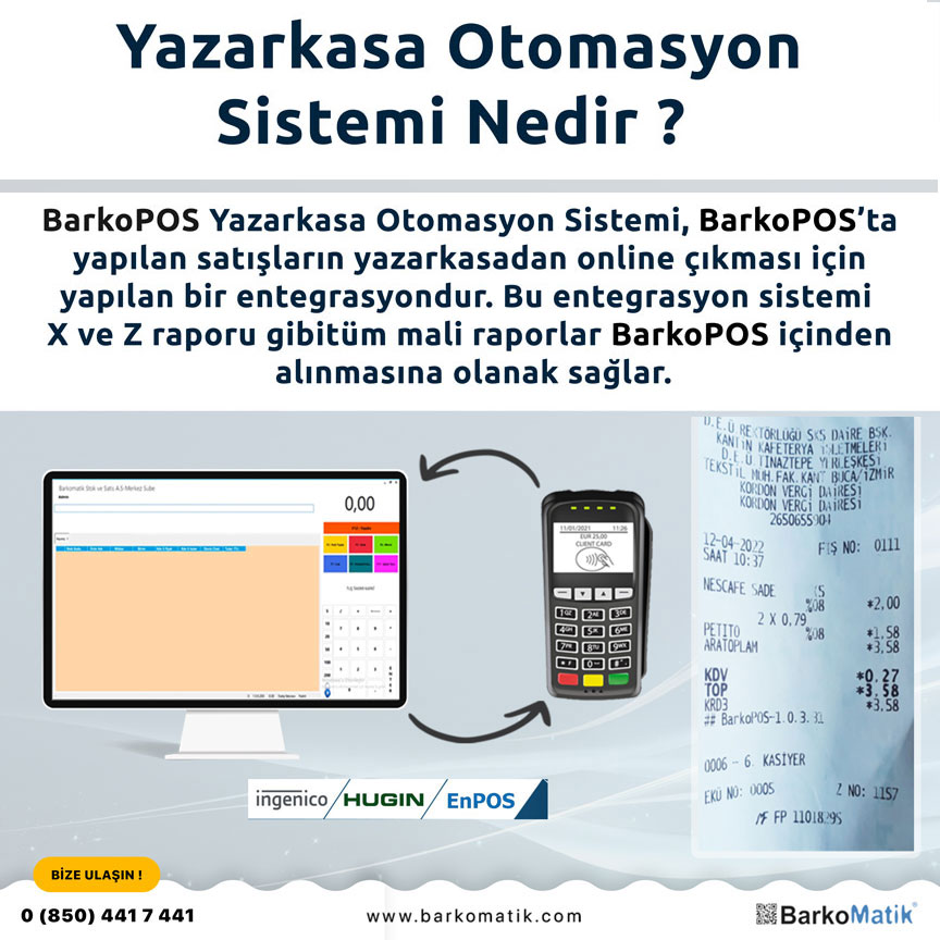 Yazarkasa Entegrasyonu perakende satış yapan ve tüm firmalar için zorunlu hale gelmişir. Yapılan tüm satışlar yazarkasada otomatik çıkmaktadır. kredi kartı seçilmiş ise kartın yazarkasaya tutulması yeterlidir. Yapılan satışın içerisindeki tüm ürünler yazarkasada tek tek çıkacaktır.